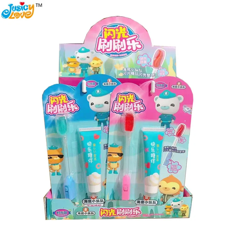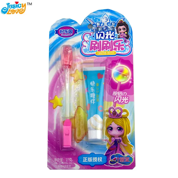 High-quality Lighting Toothbrush Toy Lollipop Hard Candy With Toothpaste Fruit Jam Candy